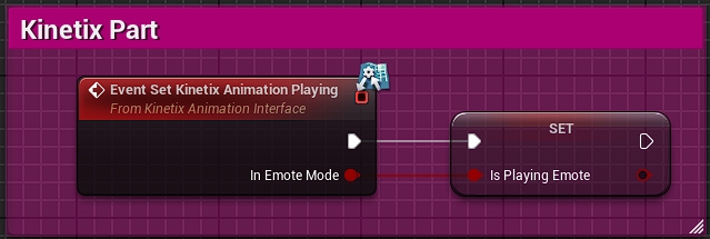 The KinetixCharacterComponent is looking for a KinetixAnimationInterface that will notify the AnimBlueprint that the user is trying to play an emote.