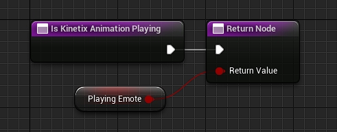 The KinetixAnimationInterface also add a function to let know the AnimSequenceSampler if your currently playing an animation. That function created automatically when the interface is added to your AnimBlueprint is: